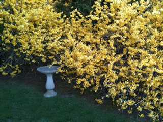 | Click on thumbnails to enlarge images | Birdbath and Forsythia | ||||||