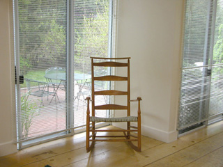 | Click on thumbnails to enlarge images | Old Shaker chair, patio and garden behind | ||||||